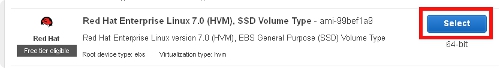 このレシピでは、以下の「Red Hat Enterprise Linux 7.0」のマシンイメージを選択します。「Select」ボタンをクリックしてください。