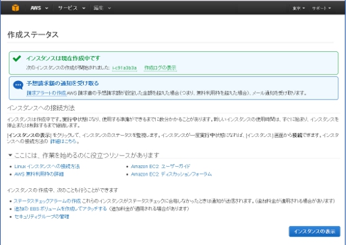 以上でAWSの準備は完了です。 なお、このレシピは最低限のリソースで実現できるので、インスタンス作成は非常に簡単なステップで完了させています。当然様々な機能やオプションが用意されておりますので、必要に応じて選択してください。