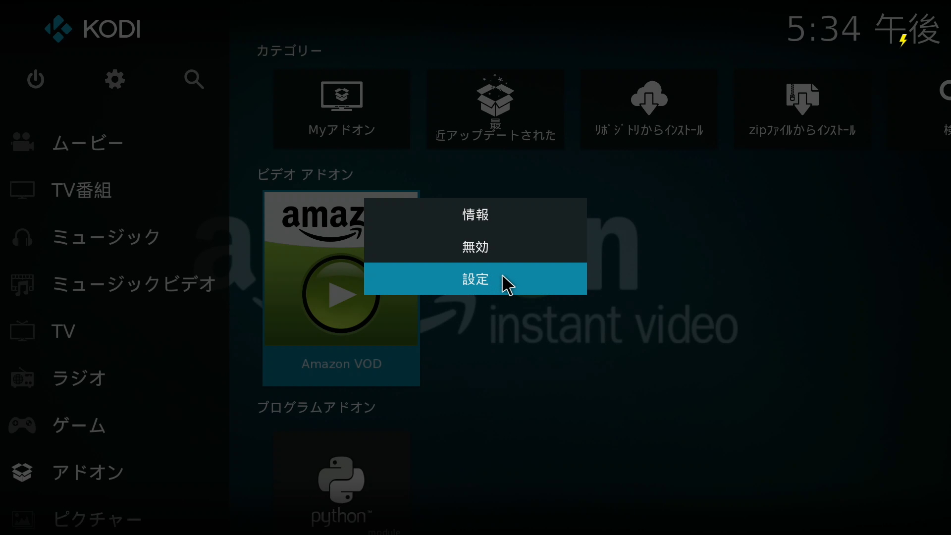 ここからは「Amazon VOD」のアドオンの初期設定を行います。