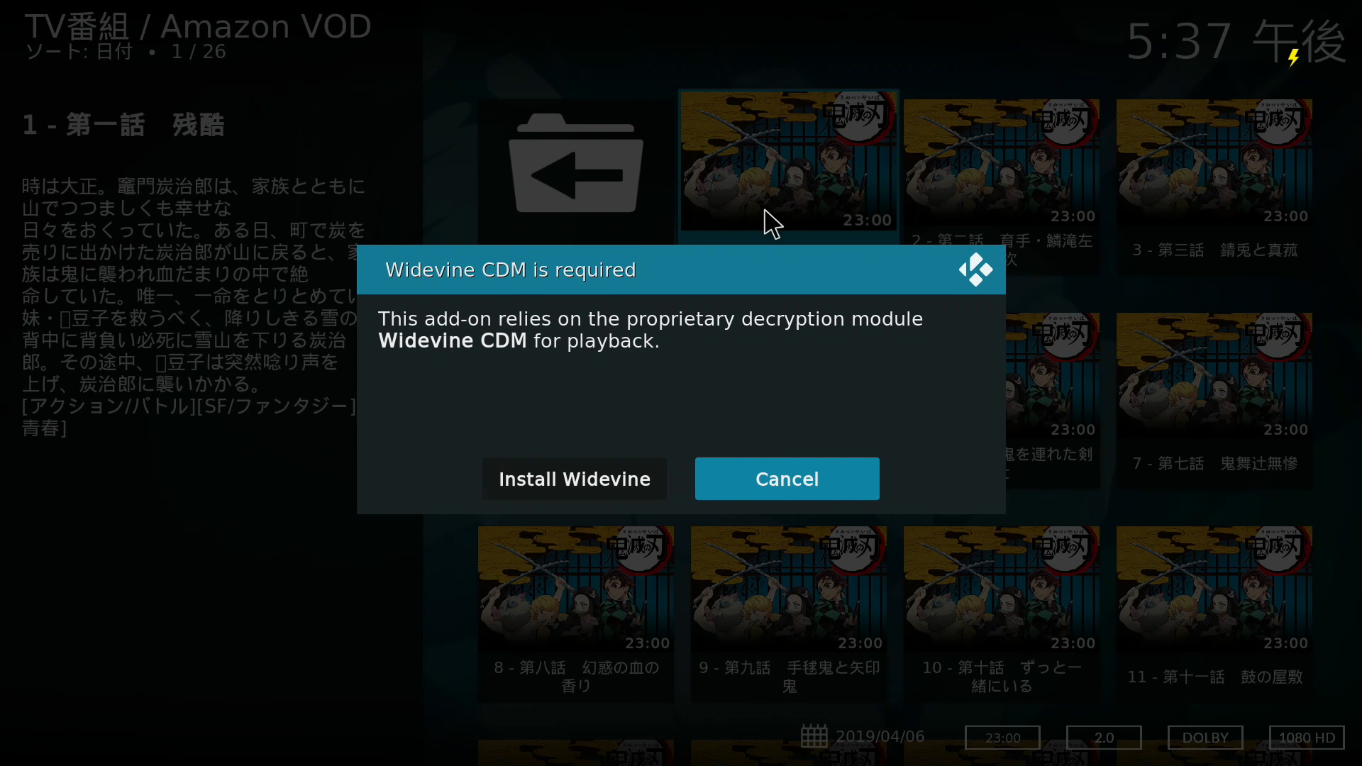 さて、ここからもう少し「Amazonプライム・ビデオ」を見るにはモジュールが必要です。