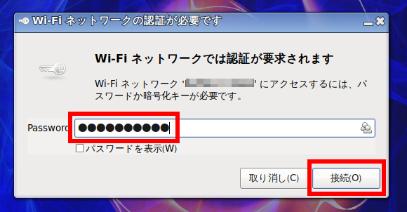以上で無線の設定は完了です。USBフラッシュメモリから起動している場合は、設定はUSBに自動的に保存されますので、次回起動時には設定することなく、自動的に無線ネットワークに接続されます。
